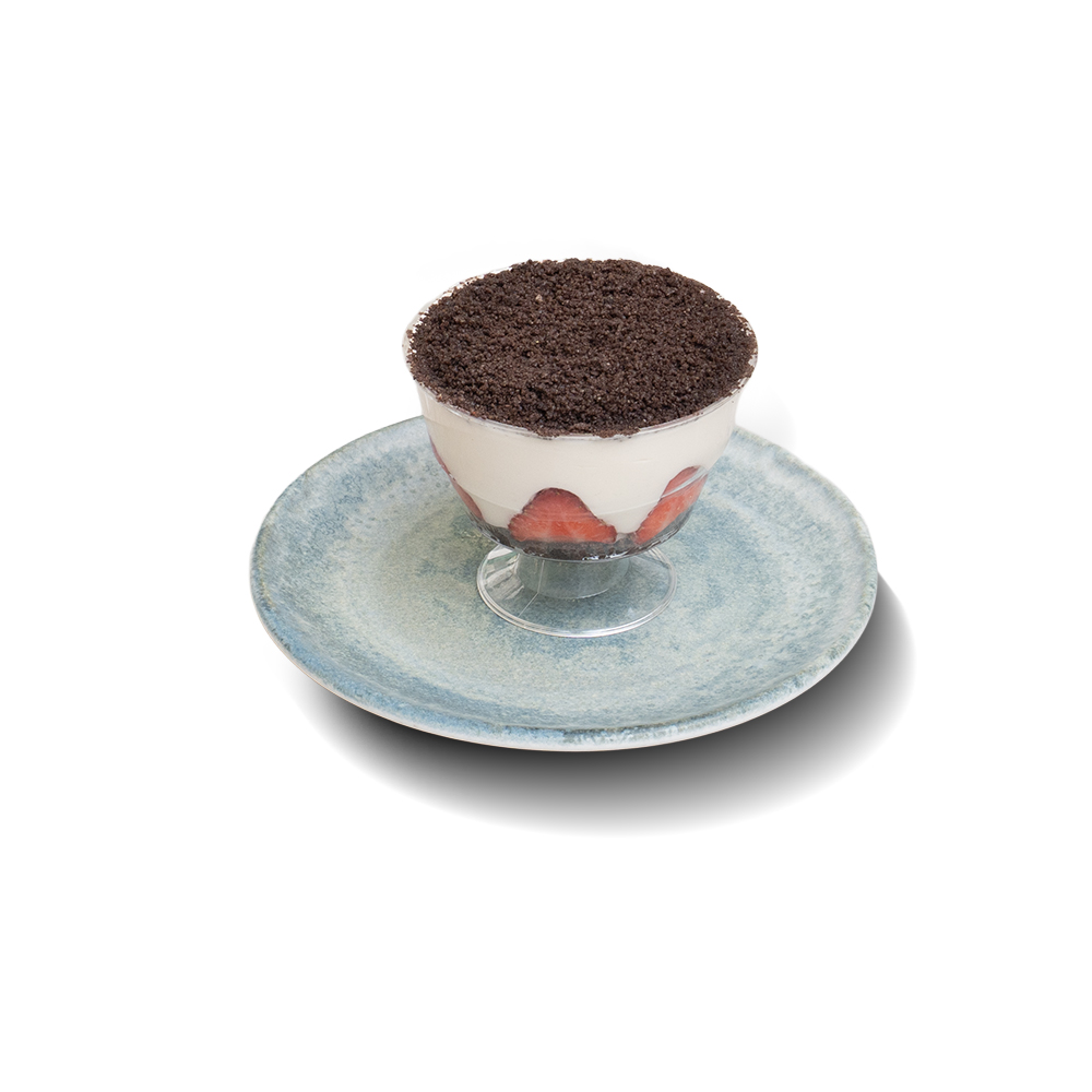 Kremamsı dokulu tatlının içine taze çileklerle yapılan, oreo kırıntıları ile hafif ve ferahlatıcı bir sunum.
